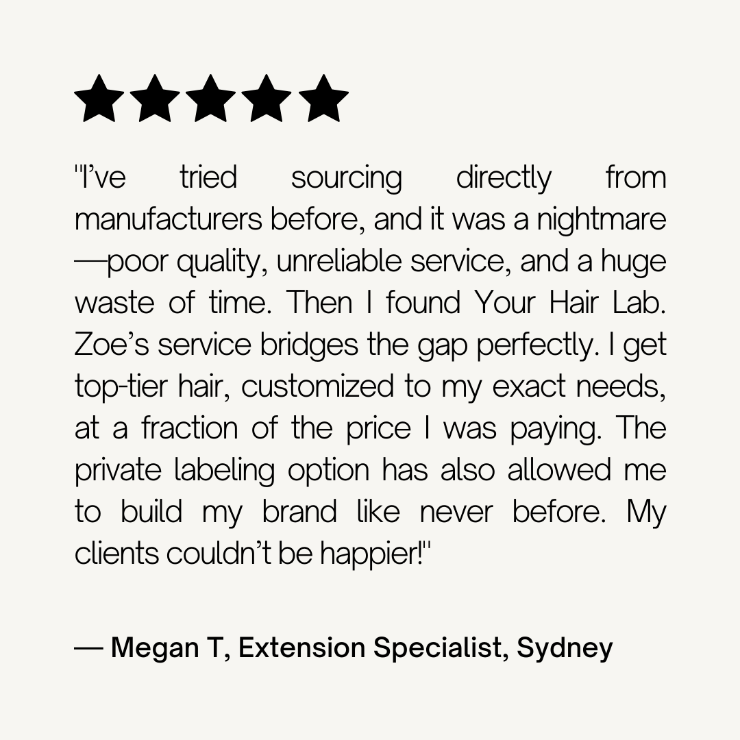 At Your Hair Lab, I offer high-quality, customizable extensions at a fraction of the usual cost—without the stress of dealing directly with factories.